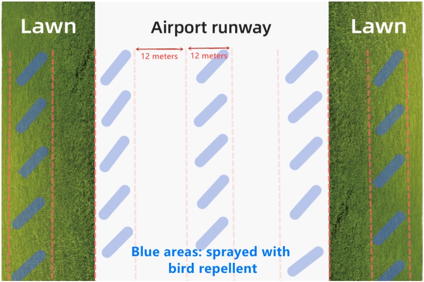 Please learn the spray alternately on the airport runway and lawn with the following picture.